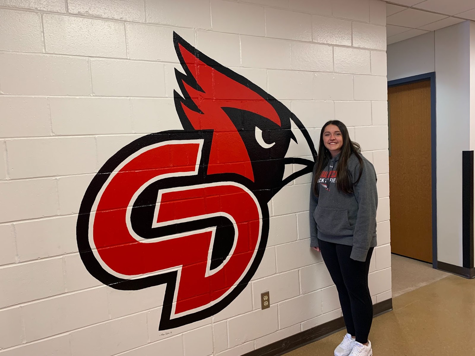 A new CD logo adorns the high school hallway. At Mr. Johnson’s request to brighten up the hallways, Mrs. Julie Pedersen had four year art student Mara Dykes ‘22 accept the challenge! She did a beautiful job of painting the new CD logo! It is located in the social studies wing of the building which is the first hallway to the right in the high school. THANK YOU Mara and THANK YOU to Sue Carroll, Vince Gutierrez and Mark Dirkswager who worked behind the scenes!