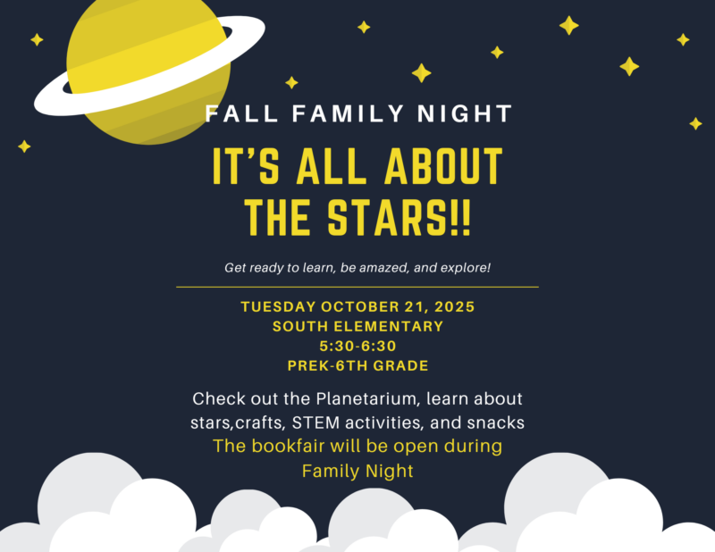 The Central Decatur Community School District invites all PreK through 6th-grade students and their families to our annual Fall Family Night: It’s All About the Stars! Join us for an evening of celestial wonder, hands-on activities, and family engagement that you won’t want to miss.