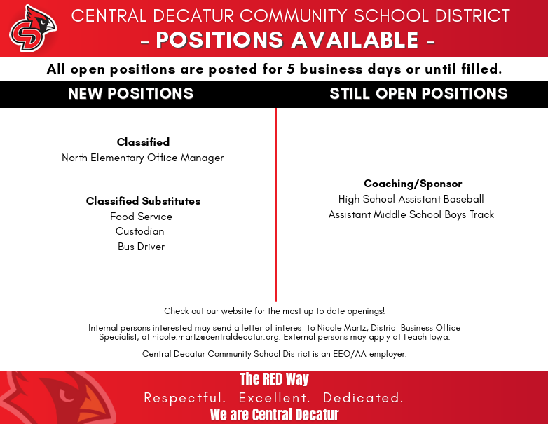 Contact Nicole Martz, District Business Office Specialist with additional questions